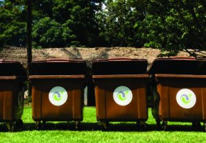 Containers para lixo e restos de alimentos, varrição, plástico, vidro, papel e papelão.
